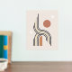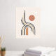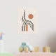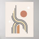 Poster featuring geometric shapes and lines in retro colours and gold or silver foil details.