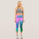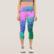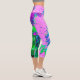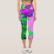 Retro Abstract Magenta and Lime Green Flower Capri Leggings