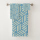 Retro Abstract Optical Illusion Cubes Pattern Blue Bath Towel Set