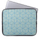 Retro Abstract Optical Illusion Cubes Pattern Blue Laptop Sleeve