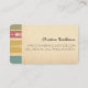Mid century retro vibe featuring random colourful abstract squares pattern and aged background on business card for personal or private chefs, caterer or catering, culinary instruction, cooking classes and more.