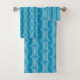 Retro Abstract White Lines on Blue Pattern Bath Towel Set