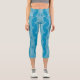 Retro Abstract White Lines on Blue Pattern Capri Leggings