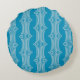 Retro Abstract White Lines on Blue Pattern Round Pillow