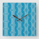 Retro Abstract White Lines on Blue Pattern Square Wall Clock