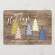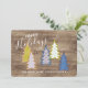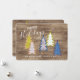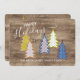Retro Abstract Xmas Trees On Woodgrain Pattern Holiday Card