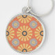 Retro Abstrat Blue and Orange Daisies Pattern Keychain