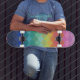 Ride with colour and confidence on this rainbow diamond gradient skateboard deck. Featuring a smooth blend of hues from soft pink and peach to vibrant greens, blues, and purples, the layered diamond pattern adds a bold geometric twist. Ideal for skaters who love expressive, artsy, or pride-inspired gear that stands out at the skatepark or on display.