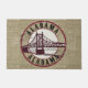 Welcome guests with Southern charm and vintage flair! This Retro Alabama Bridge Stamp Doormat features a rustic faux burlap background and a round, travel-style stamp showcasing the iconic Mobile, Alabama bridge in bold silhouette. A perfect blend of nostalgic road trip vibes and cozy front porch style, this unique doormat adds a warm, lived-in look to any doorstep. Ideal for Alabama natives, travelers, or fans of retro Americana décor!