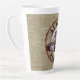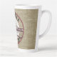Classic tall latte mug feature faux burlap background with travel style stamp of the Mobile Alabama bridge in silhouette.