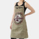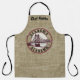 Personalized apron features faux burlap background with round travel style stamp of the Mobile Alabama bridge in silhouette. Great Father's Day gift idea - just add name or monogram!