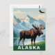 Embrace the untamed beauty of the Last Frontier with this stunning Alaska postcard, designed in a captivating retro travel poster style!