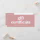 This trendy, boho dusty rose pink small business gift certificate features stylish retro typography. There is a spot for your logo on the back.