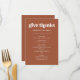 These elegant, boho Thanksgiving or Friendsgiving dinner menus feature white retro text that says "give thanks," on an autumn terracotta coloured background.