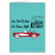 Fun Retro Colours and Style Bunco Design by Artinspired. Featured is a retro women driving away from her home in a red convertible. Text reads "I'm Out Of Here - It's Bunco Night!" She drives away from her house full of laundry, cooking cleaning, kids, husband and is heading for a night of Bunco fun! Great gift or prize for birthday, hostess, holidays of just for fun.