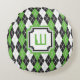 Argyle goes retro 8-bit with this green, grey, white, and black colour scheme which hearkens back to old-school arcade games. Customize this pillow with your initial to make it uniquely your own.