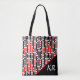 Enhance your wardrobe accessories with a custom-made tote bag. Retro Art Deco Red Black Abstract Pattern Design Monogrammed Tote Bag. Monogram with your own initials. Great gift idea.