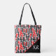 Retro Art Deco Red Black Abstract Pattern Monogram Tote Bag