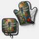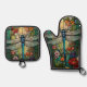 Retro art nouveau dragonfly boho chic oven mitt & pot holder set