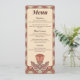 Present your wedding banquet with distinction using this elegant retro-style wedding menu. Featuring an Art Nouveau-inspired composition and a Mid-Century Modern earth-tone palette, this design includes a beautiful botanical illustration and an arched frame that brings an artistic touch to your table.