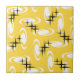 Retro Atomic Age Swirls Stars Pattern Yellow Tile