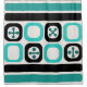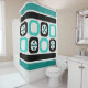 A contemporary abstract art design with simple squares and thick lines in turquoise and teal blue