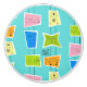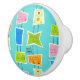 This Retro Atomic Kitsch Ceramic Pull features so many kitschy shapes and so many kitschy patterns. The Palm Springs inspired pattern features a turquoise background and oodles of wonderfully 1960’s line drawings. It’s almost too cute to describe! A vintage, pink shape features a retro trailer and car. A yellow block features a juke box. A blue shape features a sophisticated woman carrying a martini. A green space age shape holds a starburst clock and a classic television set. A lime block has a cat and a mid century modern record player. And an orange shape features a classic finned car and a roadside diner sign. What’s not to love?