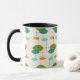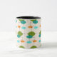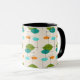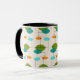 This Retro Atomic Mobile Pattern Ringer Mug is mid century modern style at its finest. The vintage inspired design features a cream background with colourful pointed ovals in turquoise, orange, teal, and avocado green. The teal and avocado green ovals overlap creating a lovely shade of peacock blue. Fun starbursts accentuate slanting and straight lines, which connect the shapes forming a kitschy mobile pattern. This mod design pairs exceptionally well with StrangeLittleOnion’s Retro Grid and Starburst products.