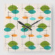 This Retro Atomic Mobile Pattern Square Wall Clock is mid century modern style at its finest. The vintage inspired design features a cream background with colourful pointed ovals in turquoise, orange, teal, and avocado green. The teal and avocado green ovals overlap creating a lovely shade of peacock blue. Fun starbursts accentuate slanting and straight lines, which connect the shapes forming a kitschy mobile pattern. This mod design pairs exceptionally well with StrangeLittleOnion’s Retro Grid and Starburst products.