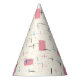 You'll be tickled pink by this Retro Atomic Pink Pattern Party Hat. The design features a cream background with gold speckles, pink rectangles, and black, turquoise, and pink slashes. The pattern is reminiscent of traditional mid century modern style. You're sure to enjoy our homage to the 1950s. Buy this today and be the coolest cat on your block.