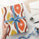 Retro Atomic Stars on mid century ogee pattern Wrapping Paper