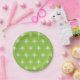 This is elegant mid century white atomic starbursts on lime green background. It's great looking paper plate for birthday party with retro theme