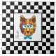 A cute ceramic tile of retro black and white chequerboard, and a colourful painted hipster bear. Personalize the tile with your name or text scripted along the side of the cat, if desired, or just leave blank. Use the tile as a trivet, or as an artful accessory for any room in your house. Perfect for gifting to your favourite animal-loving friends, or keep for yourself!