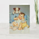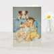 Vintage / Retro Baby greeting card. Sweet little baby in crib being watched by an adorable puppy! Adorable baby and dog card!