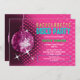 © Socialite Designs Inc. Celebrate the bride-to-be bachelorette party by sending out these fun pink disco ball party invitations. Easily customize the text for your event by replacing the template text. Design incorporates a magenta disco ball, pink background with reflections and starbursts that can be moved and resized. The text is made to look like neon lights.