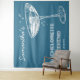 personalized retro bachelorette party tapestry in teal blue and white with a cocktail glass is perfect as a bachelorette party photo backdrop. Celebrate your bridal shower in style with the perfect cocktail party theme in teal blue and white, the perfect theme for the nostalgic vintage 70s bride and her bridesmaids.