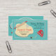 Retro inspired bakery and cafe business card with rolled dough and rolling pin. Framed by the red mixer's cord.