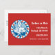 A red white and blue retro style barbershop badge graphic on red background. has a modern look and can be a great marketing tool for your barbershop or other mens' grooming business. Customize with company details on front and back.