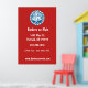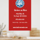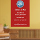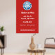 Stylish wall poster features a red white and blue retro style barbershop badge on red background. has a modern look and can be a great marketing tool for your barbershop or other mens' grooming business. Customize with company details