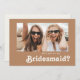Cette carte de proposition de demoiselle d'honneur avec photo marron dans un style rétro de plage est parfaite pour votre mariage d'été simple, vintage, coloré et tropical bohème. Sa police unique de style bohème du milieu du siècle donne à ce design une ambiance hippie groovy minimaliste classique. Supposons que vous cherchiez un design qui présente des couleurs océaniques côtières rustiques et vives pour votre mariage de destination créatif des années 70 sur la plage. Dans ce cas, ce produit, ainsi que sa collection de mariage coordonnée, sont ce que vous recherchez. N'hésitez pas à changer la couleur et à ajouter vos propres illustrations, graphiques ou photos. Si vous avez des questions sur la conception de ce produit, n'hésitez pas à nous contacter !