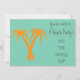 A party invitation for a beach party featuring a retro hip, cool graphic of colourful bright orange Palm Trees with a Hawaii vibe in bright and vibrant colours of orange and light aqua ocean blue. The text on this invitation is fully customisable to include your own personal details.