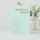 Cette carte de rétro-plage | carte de programme des événements de couleur aqua est parfaite pour votre mariage d'été simple, vintage, coloré et tropical bohème. Sa police unique de style bohème de milieu de siècle donne à ce design une ambiance hippie groovy minimaliste classique. Supposons que vous cherchiez un design qui présente des couleurs océaniques côtières rustiques et lumineuses pour votre mariage créatif des années 70 au bord de la mer. Dans ce cas, ce produit, ainsi que sa collection de mariage coordonnée, sont ce que vous recherchez. N'hésitez pas à changer la couleur et à ajouter vos propres illustrations, graphiques ou photos. Si vous avez des questions sur la conception de ce produit, n'hésitez pas à nous contacter !