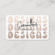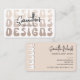 Modern craft artist and designer business card with retro fonts and beige background. The retro font design reads 'designs' and 'hello' and adds a really trendy feel to this trendy cream and white calling card design, perfect for your handcrafted boutique, arts and crafts business, design studio or any other creative business. You can customize this business card with your logo and business details to make it your own.