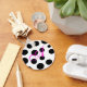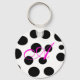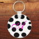 Did you love the poodle skirt look? The whimsy of black and pink and polka dots? Well we have a cute little key chain, for you, that's white with black polka dots and has a customizable pink script monogram. Fun, and makes a nice little gift too.