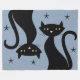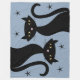 Blanket with black cats with black stars with a "construction boom blue" background reminiscent of the 1950s.