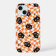 Retro Black Cat Orange Check Pattern iPhone 15 Case