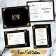 The front of this simple, elegant art deco floral save the date postcard features vintage script and sans serif typography in gold text on a black background, surrounded by a minimal faux gold foil border with with retro flowers in the corners, combining sophisticated glamour with minimalism. The back features a black background with a gold-edged white area in the centre, where there is customizable text for your names and return address, a message, and a guest address if you wish to personalize each card specially (or you can leave it blank to fill out the guests' addresses by hand). You can customize the text by editing the product template to personalize this card for your own wedding.