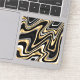 This stunning abstract black and gold marble swirl painting features a retro wavy line Groovy pattern with a modern twist. The piece of art is filled with faux gold foil, black, grey, and white colours. The marbling wavy lines give it a psychedelic illusion aesthetic background. It's a trendy, creative, and vibrant fluid art piece that brings the 70s vibes to creative painting.
