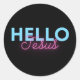 Retro Black Pink Neon Hello Jesus Christian Coffee Classic Round Sticker