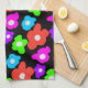 Retro Black Rainbow Colourful Flowers Pattern Kitchen Towel
